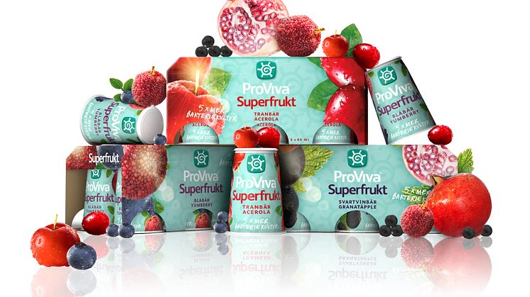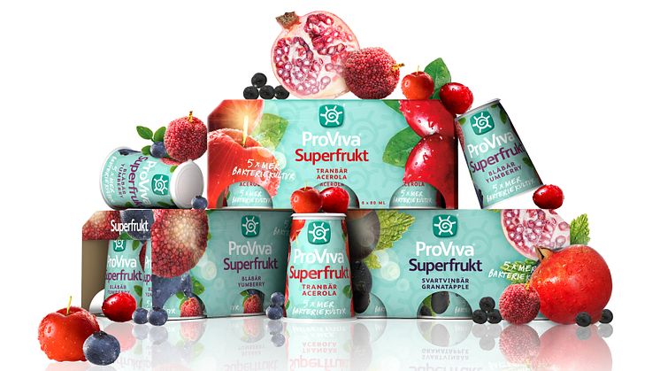 ProViva Superfrukt kommer i tre nya smaker, varje smak är en kombination av ett traditionellt svenskt bär som förstärkts med en ”superfrukt”. De nya smakerna är Blåbär-Yumberry, Tranbär-Acerola och Svartvinbär-Granatäpple. Nytt är också att tidigare fyrpacksförpackning har utökats till sexpack.