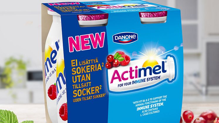 –Efter den stora succén med Actimel jordgubb utan tillsatt socker, har vi kämpat för att få till en ny smak utan tillsatt socker, säger Tyrsky Ylppö, Actimels Brand Manager på Danone Sverige. Våra svenska kunder har efterfrågat en ny smak utan tillsatt socker och vi har lyssnat Nu kan vi stolt lansera Actimel med hallon och tranbär utan tillsatt socker som har en härlig sötsyrlig och somrig smak. Hallon och tranbär utan tillsatt socker innehåller dessutom miljarder av Danones egen framtagna bakteriekultur L. Casei Danone samt B6- och D-vitamin.