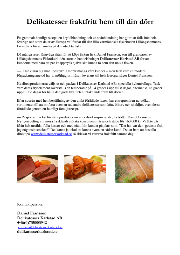 Då många reser långväga ifrån för att köpa fisken fick Daniel Fransson, idén starta e-handelsbolaget Delikatesser Karlstad AB.