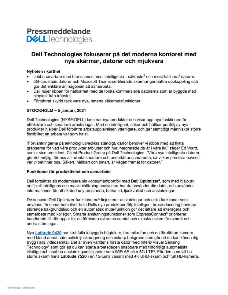 Dell Technologies fokuserar på det moderna kontoret med nya skärmar, datorer och mjukvara