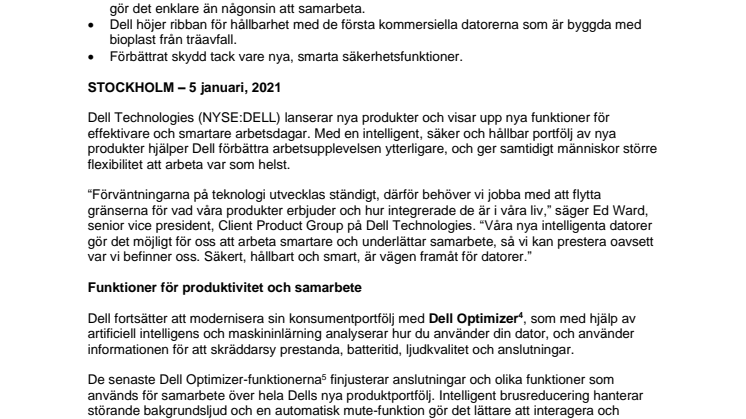 Dell Technologies (NYSE:DELL) lanserar nya produkter och visar upp nya funktioner för effektivare och smartare arbetsdagar. Med en intelligent, säker och hållbar portfölj av nya produkter hjälper Dell förbättra arbetsupplevelsen ytterligare, och ger samtidigt människor större flexibilitet att arbeta var som helst.