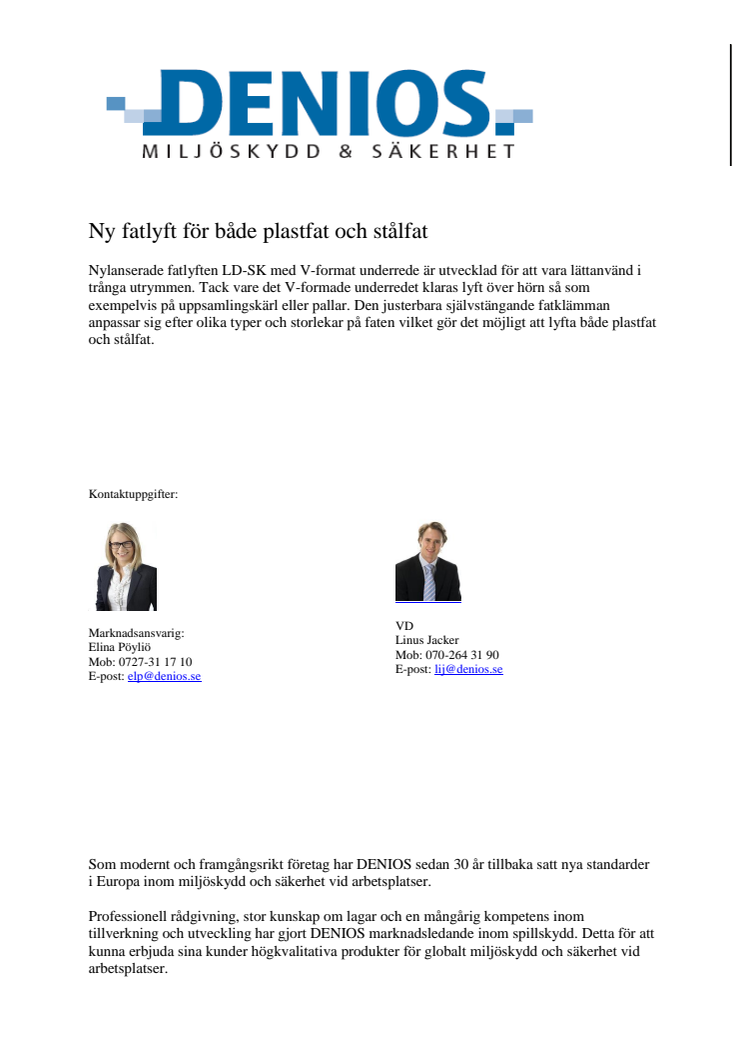 Ny fatlyft för plastfat och stålfat från DENIOS