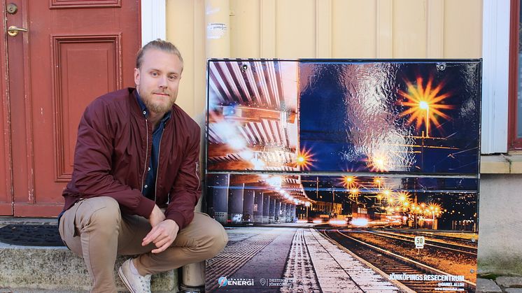 - Det känns jätteroligt att få ha min bild på ett av elskåpen, det var verkligen en överraskning att jag vann. Bilden är väldigt spontant tagen, den visar resecentrum en stormig dag tidigt våras. Jag valde den bilden eftersom jag tycker att den representerar Jönköping väldigt bra, berättar Daniel Alloh.
