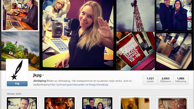 - Vi registrerade @Jkpg på Instagram 2010 när Instagram var helt nytt. I slutet av 2012 öppnade vi upp möjligheten för invånare att instagramma via vårt Jönköpingskonto i syfte att sprida en mer nyanserad bild av vår plats. Något vi alltid burit med oss i arbetet med att marknadsföra Jönköping är att det inte finns någon enskild ”ägare” till vår plats varumärke – utan att det är invånarna i vår stad. Att jobba med så kallade Jönköpingsambassadörer är något vi gjort sedan 2004 och att öppna instagramkontot för den som vill bidra till att sprida bilden av vår stad är en del i det arbetet. Sedan vi öppnade upp kontot har 42 olika personer bidragit till att sprida bilden av Jönköping, säger Maria Lindén, marknadsansvarig på Destination Jönköping.