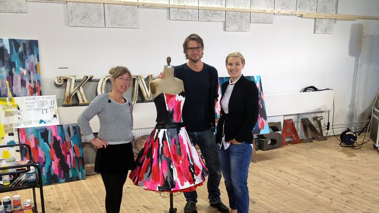 Klänningsskaparna – stylisten Malin Qvänstedt, designern Johan Lundell och konstnären Karin John – hoppas slå förra årets auktion där prislappen landade på 75 000 kr.