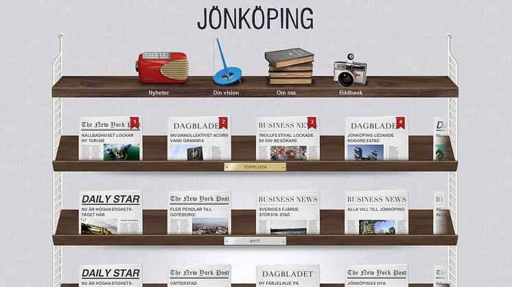 På Visionjonkoping.se kan man läsa tidningsrubriker hämtade från framtiden. De är skapade av allmänheten och handlar om allt från kallbadhus och festivaler till att Jönköping är ledande kongresstad. Det är Destination Jönköping som nu, inom ramen för visionsarbetet, tar hjälp av allmänheten för att svara på frågan hur Jönköping ska marknadsföras i framtiden.