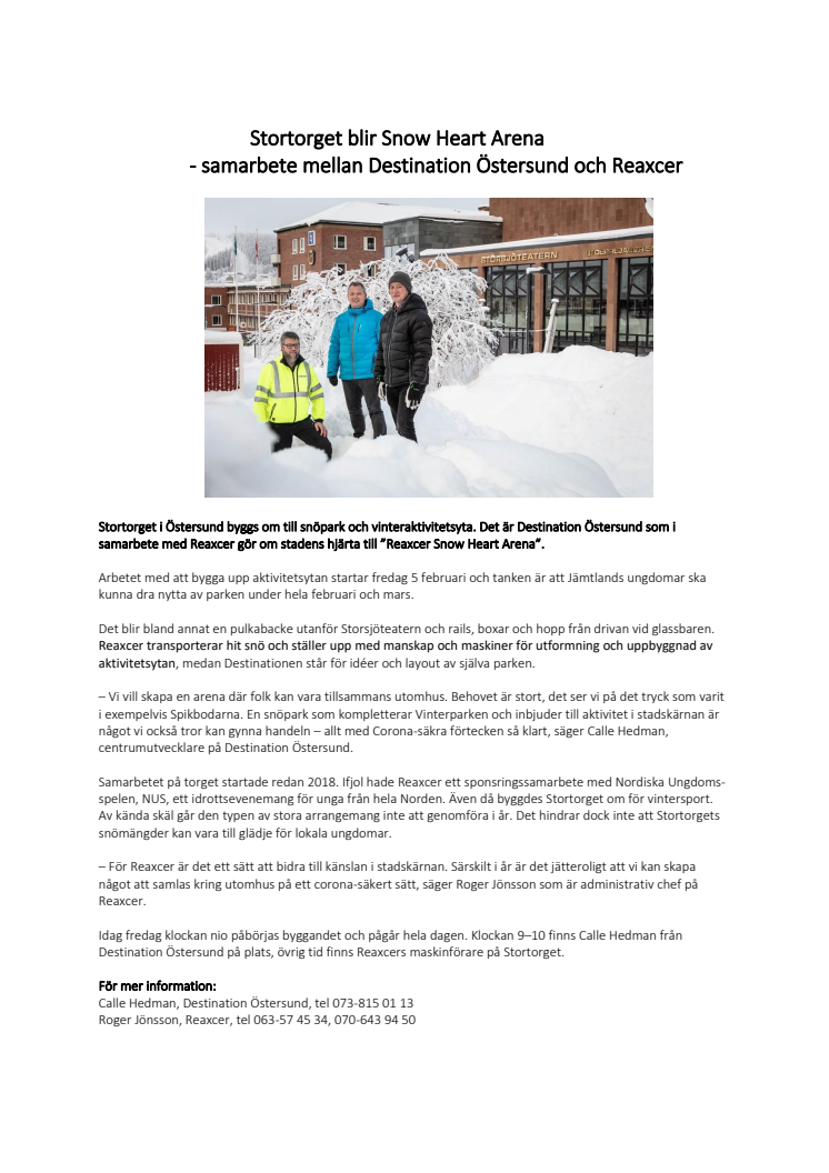 Stortorget blir Snow Heart Arena - samarbete mellan Destination Östersund och Reaxcer
