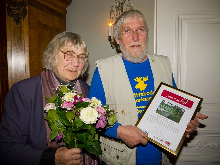 Per och Maj-Britt Larsson på Hätteboda Vildmarkscamping är Årets Turistentreprenörer i södra Småland. De fick sitt pris av landshövding Kristina Alsér på Residenset i Växjö onsdagen den 24 april.