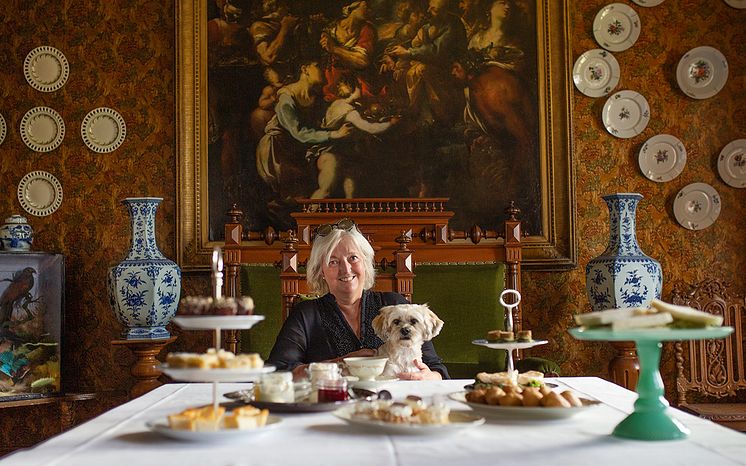 Sofie Magnusson, VD Huseby Bruk intar Afternoon tea i matsalen. Bilden ingår Visit Åsnens kampanj "Local heroes".