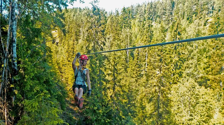 – Det är viktigt att utveckla konceptet, säger initiativtagare och delägare Jonas Grahn. Vår ambition är att erbjuda något nytt varje år. Nu har vi satsat på en riktig adrenalinkick - Kamikazebanan. Här finns nya linor, varav den längsta är 427 meter som sträcker sig över en ravin med forsande bäck. Det är ett cirka fyra timmar långt äventyr där det ingår en vildmarkslunch på ”Forest camp”. Det blir två avgångar per dag, varav den ena är en sunsetzip där man upplever solnedgången över grantopparna. Allt är bokningsbart online på hemsidan.