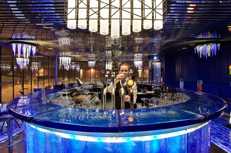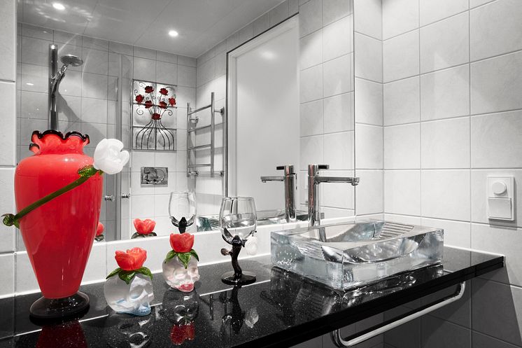 På hotellet bor man i symbios med glaset. Glasbar, reception spa, matsal, de drygt hundra rummen - alla är de designade av sju olika, världsberömda designers. Det färdigställdes sommaren 2009 och ägare är New Wave Group.
