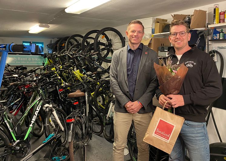 Johan Sundh grundade RentBike i Växjö 2017 och erbjuder idag helhetslösningar kopplat till cykeluthyrning, cykelpaket med bagagetransport och cykelservice. Johan bidrar starkt till samarbetet lokalt och hans cyklar finns utplacerade hos ett stort antal besöksnäringsföretag i länet, samt på över 40 andra destinationer i Sverige.