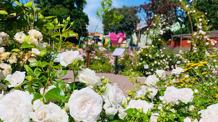 – Konventet sätter också fokus på Kalmars parker och kanske framför allt den nyanlagda rosenträdgården, som invigdes 2021 och har en lekplats med blomstertema integrerad i trädgården, vilket inte är så vanligt. Trädgården har tagits fram i nära samarbete med Svenska Rosensällskapet. En del av trädgården har rosor och perenner utvalda via POM-projektet, som är ett nationellt program för odlad mångfald och är intressant inte minst för konventets internationella deltagare, säger Emma Andersson, landskapsarkitekt, Kalmar kommun.