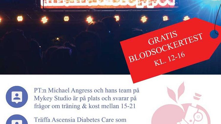 Testa ditt blodsocker gratis och ställ frågor till sjuksköterska och personliga tränare om diabetes, kost och träning. För fjärde året i rad kommer vi på Diabetes Wellness Sverige finnas på plats med eget tält och svara på frågor gällande diabetes. Allt detta sker på Midnattsloppet den 18 augusti på Zinkensdamms IP i Stockholm.