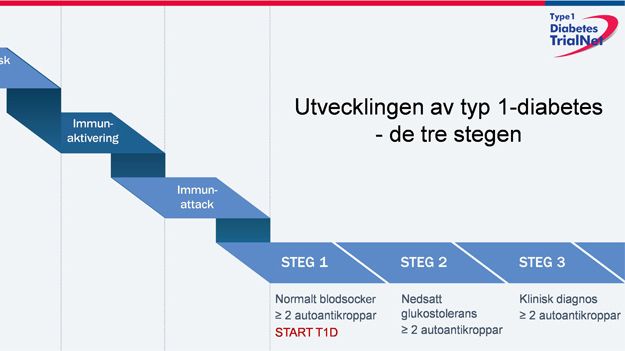Om immunförsvaret har aktiveras mot betacellerna kan autoantikroppar påvisas i blodet. Dessa varningssignaler kan finnas i blodet flera år före sjukdomsdebuten. Det är autoantikroppar som signalerar att immunsystemet har börjat angripa de insulinproducerande cellerna. Om angreppet fullföljs är typ 1-diabetes ett faktum. I dag vet vi att mer än 50 % av de individer, och ca 70 % av de barn, som har 2 eller flera autoantikroppar i blodet får typ 1-diabetes i framtiden.