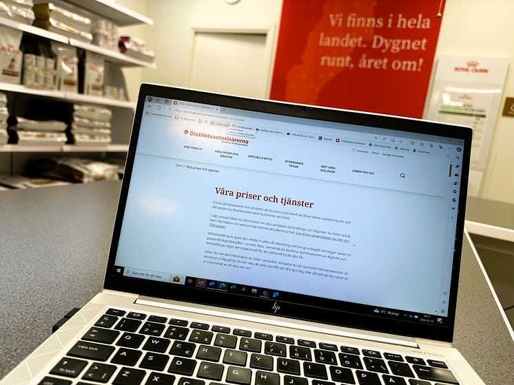 Datorskärm som visar Distriktsveterinärernas webbplats