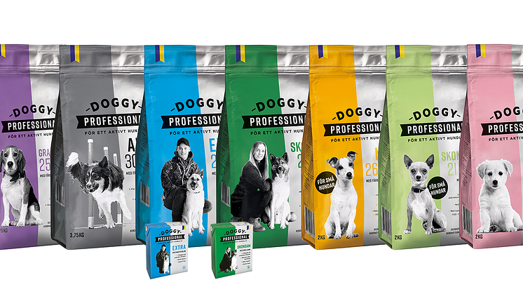 Doggy Professional är foder för hundar i rörelse. Från köket i Vårgårda kommer nu ett förbättrat Doggy Professional-sortiment med bättre recept, samt flera nyheter. Orsaken är att allt fler efterfrågar smakliga helfoder anpassat efter hundens aktivitetsnivå.