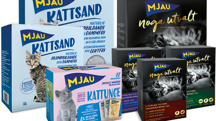 – Vi kan tydligt se att de svenska kattägarna gillar Mjau och det vi gör. Vi har aldrig tidigare lanserat så många produkter på en och samma gång, men tack vare den fina responsen vi får från kunderna så vågar vi satsa. Vi är ett svenskt kattmatsföretag och det vi vill fortsätta vara genom att erbjuda kattmat till våra svenska katter med bra innehåll, säger Anna Lindblad, Brand manager för Mjau kattmat.