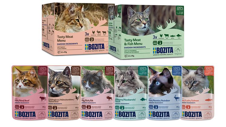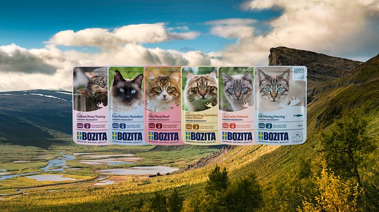 Djurmatsproducenten Bozita lanserar pouch i gelé: en smidig enportionsförpackning fullproppad med svenska råvaror av hög kvalitet, tillagad i Vårgårda. Det här är den andra produkten som rullar ut från Bozitas nybyggda fabrik. En produkt som faller den medvetna kattägaren i smaken.