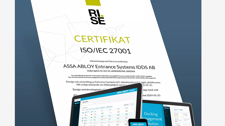 ISO/IEC 27001:2022. Att uppnå denna certifiering sker inte över en natt, på Assa Abloy Entrance Systems har man alltid varit fast beslutna om att säkerställa full efterlevnad av de s