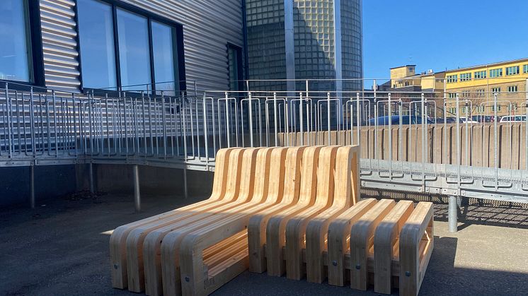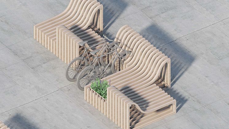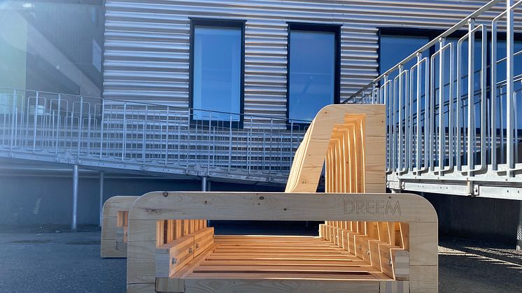 Genom Dreem Lab har vi skapat den urbana modulbänken ”Wave” av spillmaterial från korslaminerat trä, ett material som annars skulle ha gått till förbränning.
