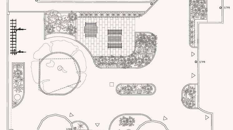 Ett befintligt träd har fått styra en stor del av gårdens utformning