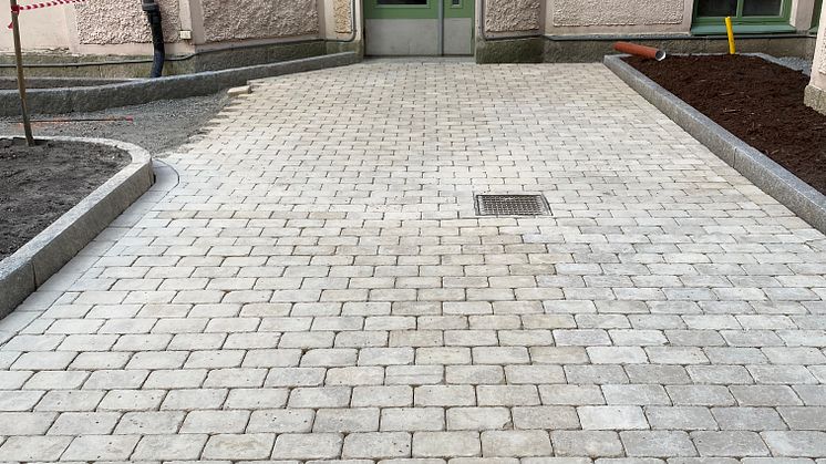 Dreem har utformat en bostadsgård tillsammans med en bostadsrättsförening som renoverar sin innergård. Både utformning och material har noga valts ut för att harmonisera med befintlig byggnad, vara praktiska samt stödja det sociala livet på gården.