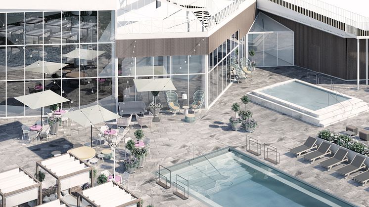 Selma Spa i Sunne har förtydligat sitt koncept: Sport, champagne och SPA. Här har Dreem ritat om hotellrum, restaurang och terrasser. Nu färdigställs även ett nytt poolområde utomhus som Dreem projekterat.