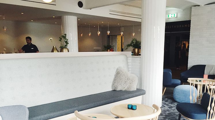 I helgen var det invigning av nya loungen på Restaurang Waterfront på Novotel. Inredningen, av Dreem arkitekter, är inspirerad av naturen, havet, dimma, himmel, drivved och de gamla muralmålningarna i lokalerna. Vi ville förstärka Carnegiebrukets karaktär utifrån befintliga element som bevaras och framhävs, med inredning och möbler som känns tidsenliga idag. Materialen går i ljust trä, vitt kakel, mässing och marmor.