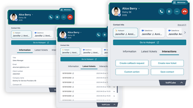 Företagsoperatören Dstny lanserar nu VoIPcube på den svenska marknaden. VoIPcube är en tjänst som ger företag möjlighet att integrera alla sina samtal med sina befintliga system. Allt från CRM till ERP kan nu användas för att berika samtal med kundinformation och logga kundinteraktioner tillbaka in i systemen. Integrationen ger en mer effektiv och personlig kundhantering för organisationer som han