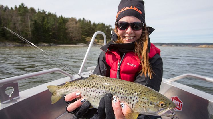 Frida Larsson är en glad fiskare. Foto: Jonas Nordigårds