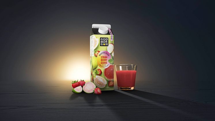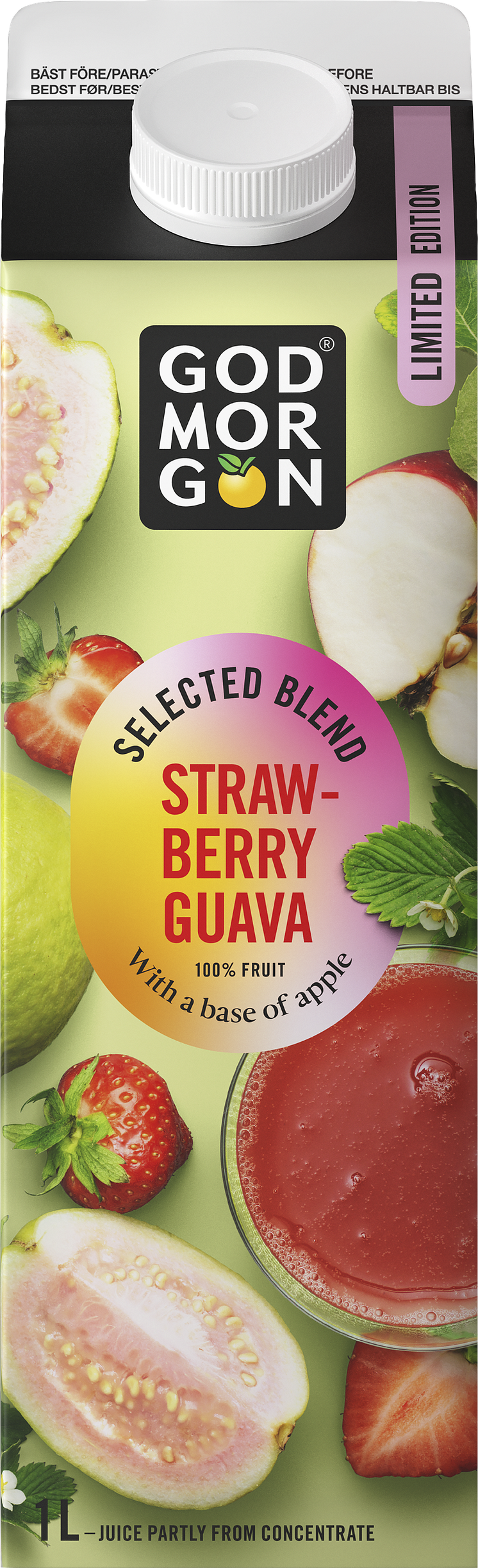 Nu adderar God Morgon® en spännande nyhet till sitt Selected Blends-sortiment i form av en ny Limited Edition-smak: Selected Blend Strawberry Guava. Kombinationen av milda äpplen, söta jordgubbar och frisk guava ger en exotisk smak som passar perfekt för finsmakaren. Samtidigt blir förra årets Limited Edition-succé, Selected Blend Mango Raspberry, nu en del av ordinarie sortiment.