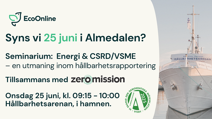 EcoOnline och ZeroMission anordnar seminarium 25 juni under Almedalsveckan