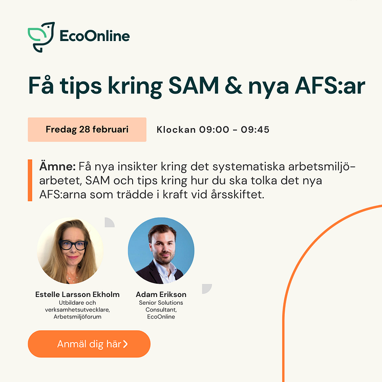 Kostnadsfritt webbinarium om nya AFS:ar och arbetsmiljö