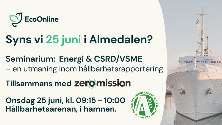 EU-direktivet CSRD väntas kraftigt skärpa kraven på hållbarhetsrapportering och påverkar redan många bolag, även om Omnibus har bromsat upp utrullningen tidsmässigt. För svenska företag innebär det att man i många fall står inför ett omfattande omställningsarbete, men reglerna kring miljörapportering upplevs som komplexa, svåra att överblicka och i vissa fall utmanande att efterleva. Särskilt när de ska kombineras med affärsverksamhetens tillväxt. Det är bakgrunden till mjukvaruföretaget EcoOnlines seminarium i Almedalen den 25 juni som arrangeras tillsammans med den långvariga partnern ZeroMission, som arbetar med konsulttjänster för klimatberäkningar och klimatbokslut.