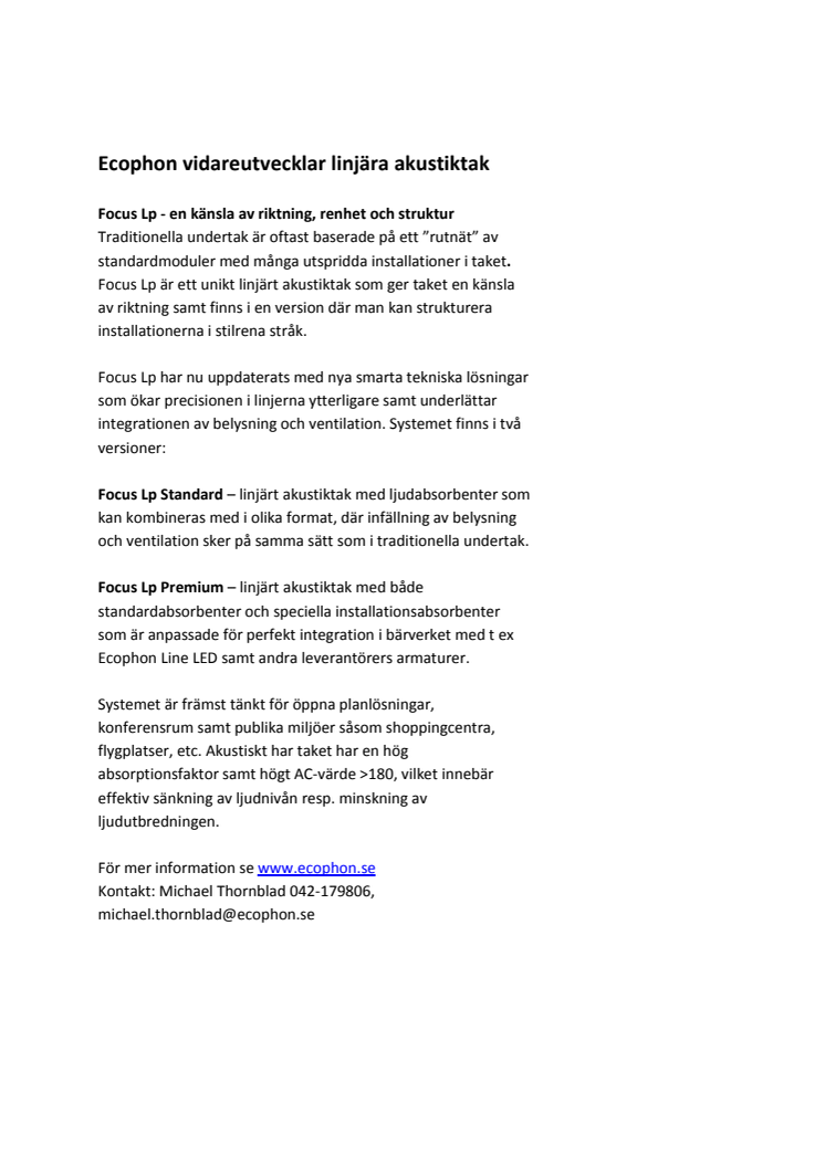 Focus Lp har nu uppdaterats med nya smarta tekniska lösningar som ökar precisionen i linjerna ytterligare samt underlättar integrationen av belysning och ventilation.