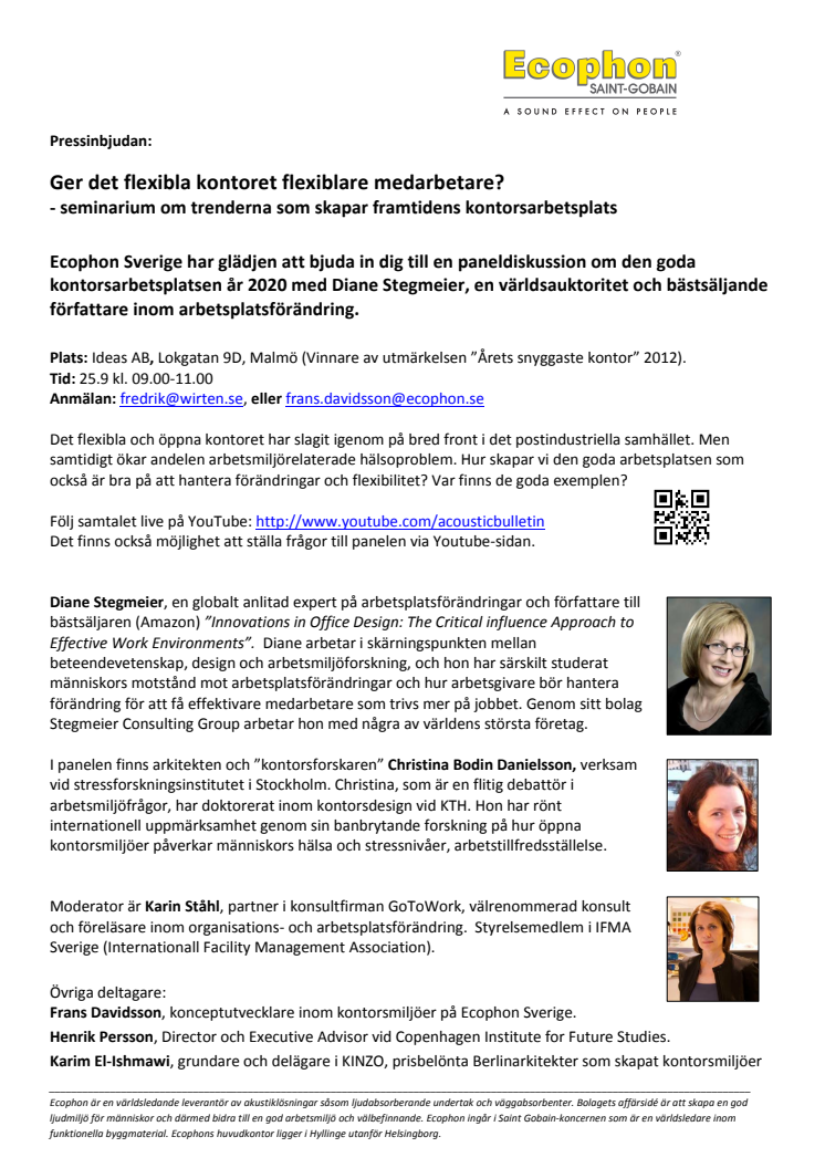 Pressinbjudan: Ger det flexibla kontoret flexiblare medarbetare? - seminarium om trenderna som skapar framtidens kontorsarbetsplats
