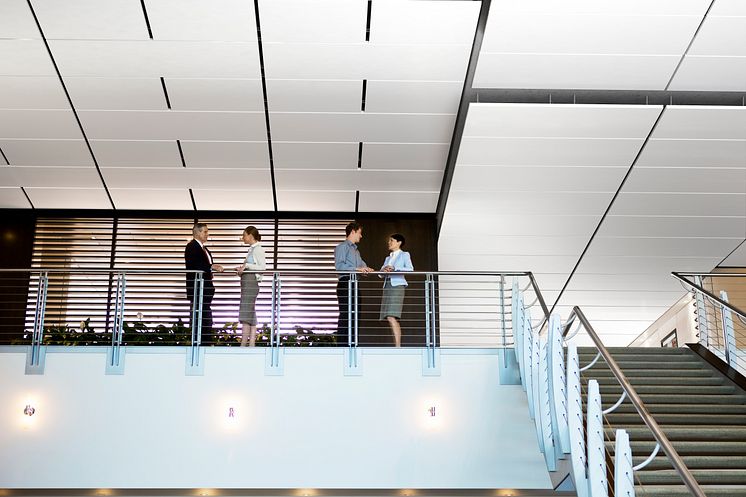 Med akustiksystemet Master Matrix lanserar Ecophon en innovation som gör det enkelt att med hög precision montera svävande akustiktak över stora ytor. Därmed är det också möjligt att skapa spännande geometriska mönster över stora ytor.