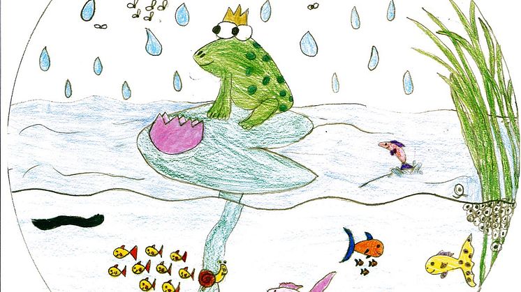 EEM fick in 78 bidrag från Eskilstunas mellanstadieklasser och de glada vinnarna mottar nu ett pris på 5000 kronor till sin klasskassa. Motivet föreställer en groda på ett näckrosblad och i vattnet finns vass och färgglada fiskar.