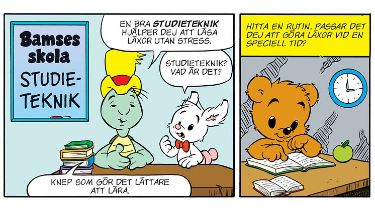 – Studieteknik är starkt kopplat till kunskap som är ett av Bamses kärnvärden. Bamses skapare Rune Andréasson började redan på 70-talet grundligt förklara olika saker i tidningen under parollen Bamses skola, berättar Charlotta Borelius som är chefredaktör på tidningen.