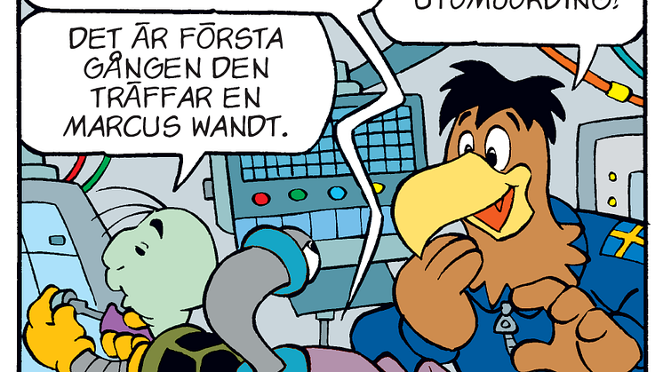 I höstas arrangerade Bamseredaktionen en workshop med astronauten Marcus Wandt på Bokmässan i Göteborg. Klass 3B från Nya Varvetskolan i Göteborg var på plats och hjälpte till med att lägga grunden till det aktuella Bamse-äventyret. De unga skoleleverna bidrog med massor av kreativa idéer och förslag, bland annat bestämdes det att Marcus skulle gestaltas som en örn.