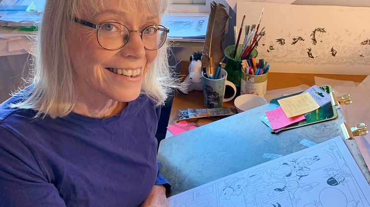 – Jag kommer aldrig släppa Mulle, han är så speciell – han blir bara roligare och roligare att göra. Jag skulle vara ledig nu, men kunde inte låta bli att rita honom. Jag skulle vilja vara mer som Mulle! Han är väldigt självständig och sorglös och han bryr sig inte om normer och ramar, berättar Lena Furberg.