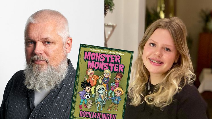 Nu släpps den tolfte delen i Johannes Pinters hyllade kapitelbokserien ”Monster monster”. Den här gången drabbar bokens fem unga hjältar samman med ett alldeles speciellt monster: Dockmylingen. Idémakare till den rysligt otäcka figuren är 14-åriga Alice Axelsson från Varberg.