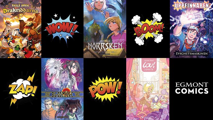 Egmont Comics vårlansering bjuder på ett brett utbud av serier för alla åldrar och intressen – från livfull vardagshumor och fartfyllda ankäventyr, till fängslande science-fiction, fantasy och häst-manga (!) inspirerade av nordisk mytologi.