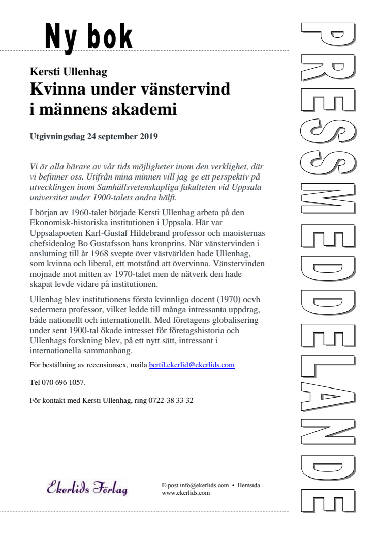 Ny bok: Kvinna under vänstervind i männens akademi av Kersti Ullenhag