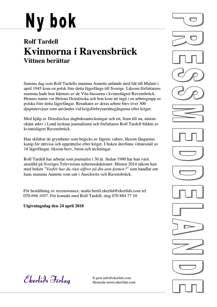 Ny bok: Kvinnorna i Ravensbrück - vittnen berättar av Rolf Tardell