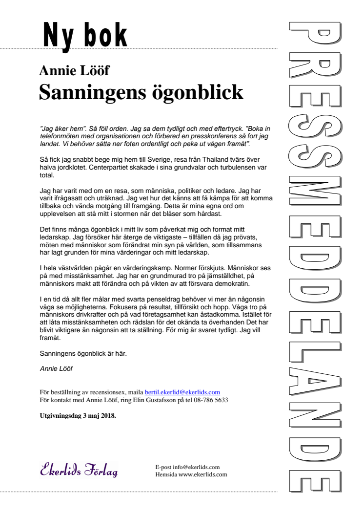 Ny bok: Sanningens ögonblick av Annie Lööf