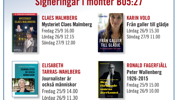 Claes Malmberg, Elisabeth Tarras-Wahlberg m fl i Ekerlids monter på bokmässan