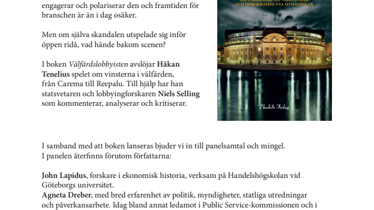 Inbjudan till release av boken Välfärdslobbyisten - om Caremadrevet, vårdvinster och demokratins nya utmaningar