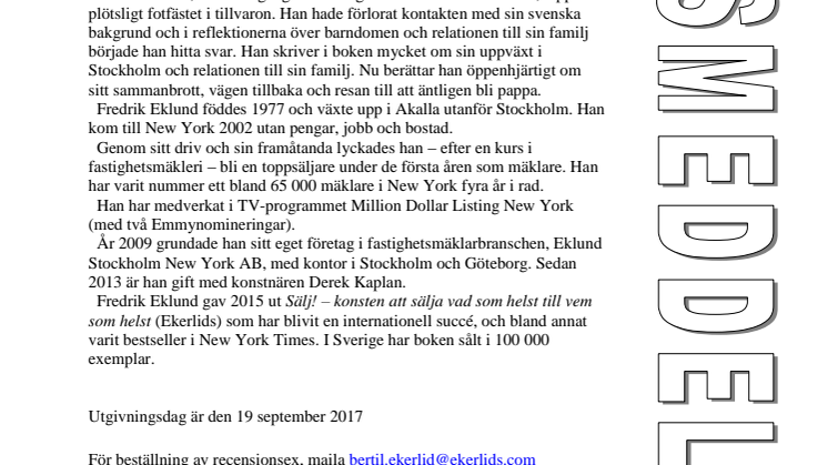 Fredrik Eklund föddes 1977 och växte upp i Akalla utanför Stockholm. Han kom till New York 2002 utan pengar, jobb och bostad.